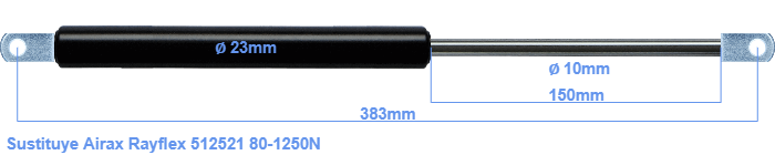 Repuesto para Airax Rayflex 512521 80-1250 Newton. El ojal tiene un grosor de 10mm y un agujero de diámetro 8.1mm. Marca: HAHN, a Stabilus company.