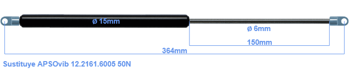 Repuesto para APSOvib 12.2161.6005 50 Newton. El ojal tiene un grosor de 3mm y un agujero de diámetro 6.1mm. Marca: HAHN, a Stabilus company.