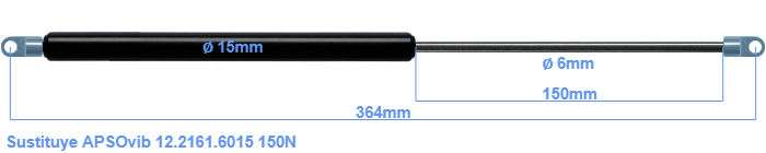 Repuesto para APSOvib 12.2161.6015 150 Newton. El ojal tiene un grosor de 3mm y un agujero de diámetro 6.1mm. Marca: HAHN, a Stabilus company.