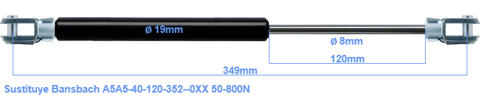 Repuesto para Bansbach A5A5-40-120-352--0XX 50-800 Newton. La horquilla tiene un agujero de diámetro 8.1mm. Marca: HAHN, a Stabilus company.