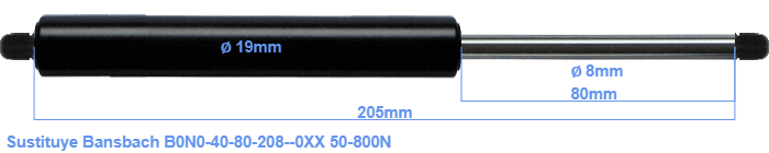Repuesto para Bansbach B0N0-40-80-208--0XX 50-800 Newton. Rosca: M8. Marca: HAHN, a Stabilus company.