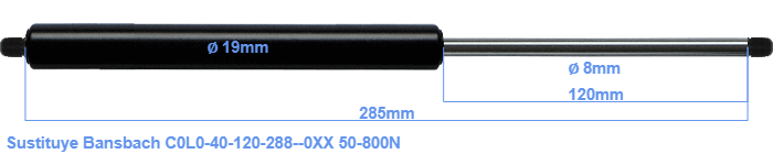 Repuesto para Bansbach C0L0-40-120-288--0XX 50-800 Newton. Rosca: M8. Marca: HAHN, a Stabilus company.