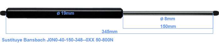 Repuesto para Bansbach J0N0-40-150-348--0XX 50-800 Newton. Rosca: M8. Marca: HAHN, a Stabilus company.