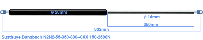 Este resorte de gas también se conoce como Winco Easylift N2N2-55-350-800, N2N2-55-350-800--0XX.