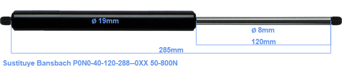 Repuesto para Bansbach P0N0-40-120-288--0XX 50-800 Newton. Rosca: M8. Marca: HAHN, a Stabilus company.
