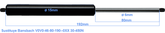 Repuesto para Bansbach V0V0-46-80-190--0XX 30-450 Newton. Rosca: M5. Marca: HAHN, a Stabilus company.