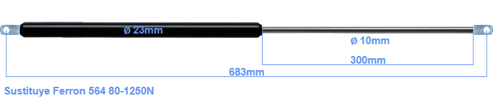 Repuesto para Ferron 564 80-1250 Newton. El ojal tiene un grosor de 10mm y un agujero de diámetro 8.1mm. Marca: HAHN, a Stabilus company.
