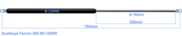 Repuesto para Ferron 565 80-1250 Newton. El ojal tiene un grosor de 10mm y un agujero de diámetro 8.1mm. Marca: HAHN, a Stabilus company.