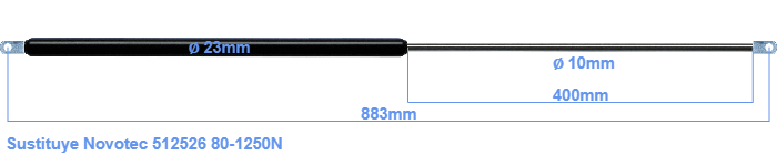 Repuesto para Novotec 512526 80-1250 Newton. El ojal tiene un grosor de 10mm y un agujero de diámetro 8.1mm. Marca: HAHN, a Stabilus company.