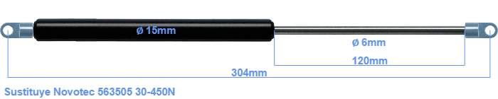Repuesto para Novotec 563505 30-450 Newton. El ojal tiene un grosor de 3mm y un agujero de diámetro 6.1mm. Marca: HAHN, a Stabilus company.