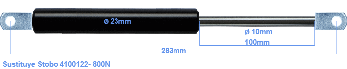 Repuesto para Stobo 4100122- 800 Newton. El ojal tiene un grosor de 10mm y un agujero de diámetro 8.1mm. Marca: HAHN, a Stabilus company.