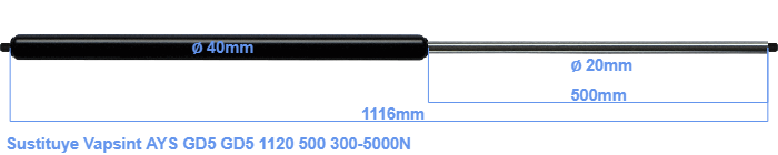Repuesto para Vapsint AYS GD5 GD5 1120 500 300-5000 Newton. Rosca: M14. Marca: HAHN, a Stabilus company.
