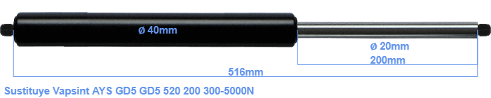 Repuesto para Vapsint AYS GD5 GD5 520 200 300-5000 Newton. Rosca: M14. Marca: HAHN, a Stabilus company.